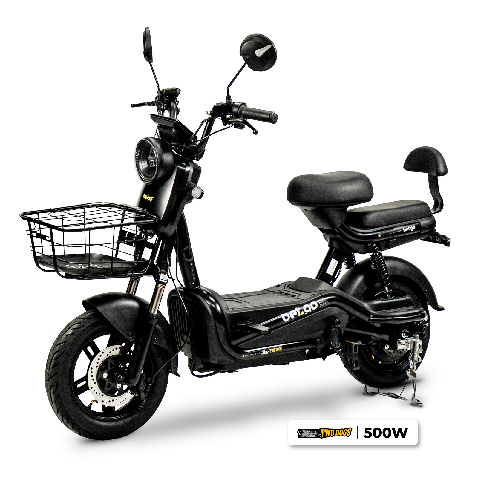 A Bet.GO 500W vem equipada com alarme, freios a disco, iluminação completa e proteção contra água e poeira IP62, garantindo segurança em qualquer hora do dia. Produzida no Brasil, ela conta com suporte exclusivo, um ano de garantia e toda a confiança da Two Dogs, marca com mais de 15 anos no mercado da mobilidade elétrica.