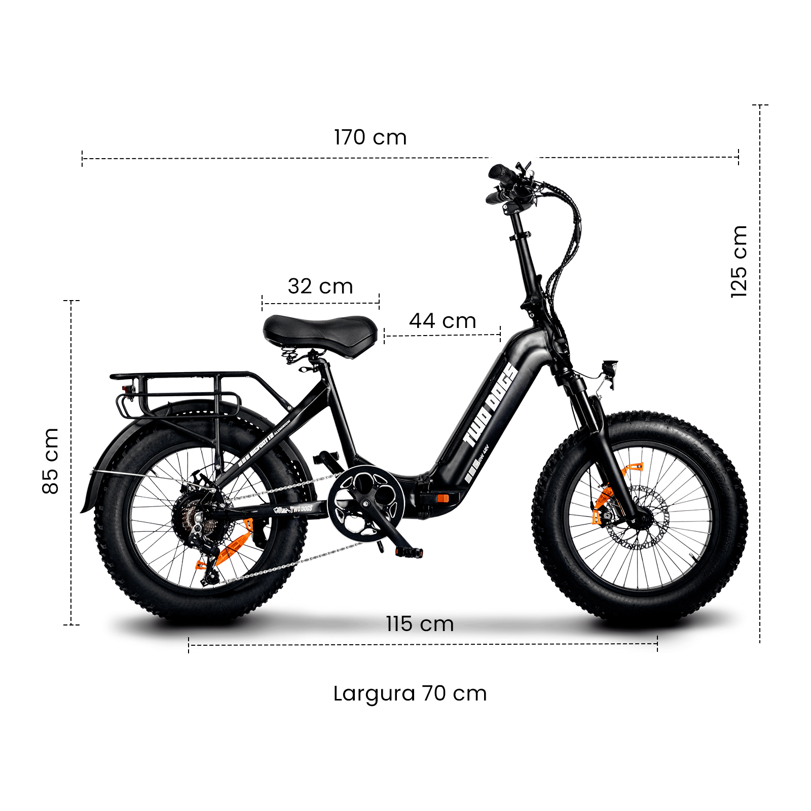 Bicicleta Elétrica Dobrável Two Dogs Bigfoot T2 750w Lítio 48v c/ Alarme