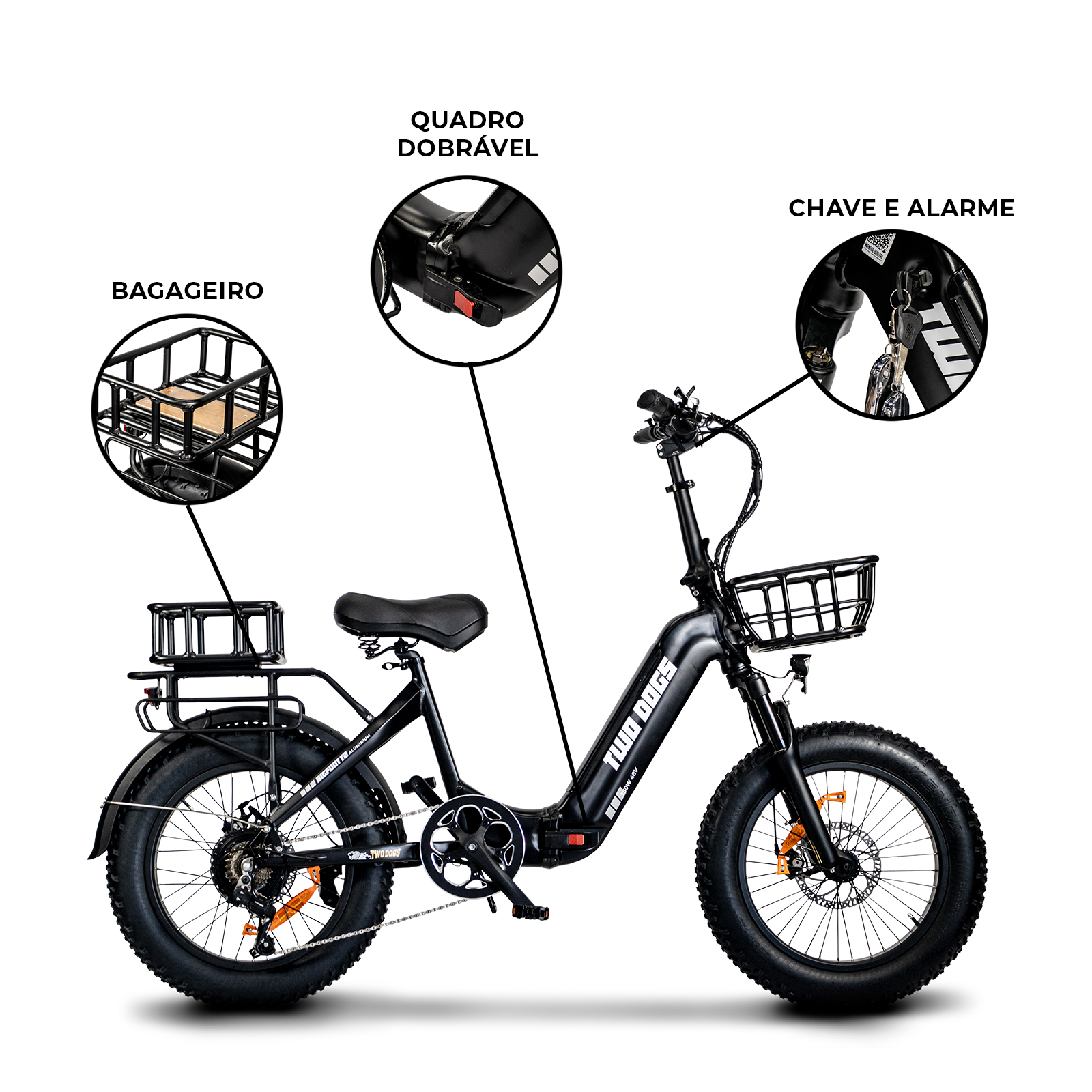 Bicicleta Elétrica Dobrável Two Dogs Bigfoot T2 CARGO 750w Lítio 48v c/ Alarme