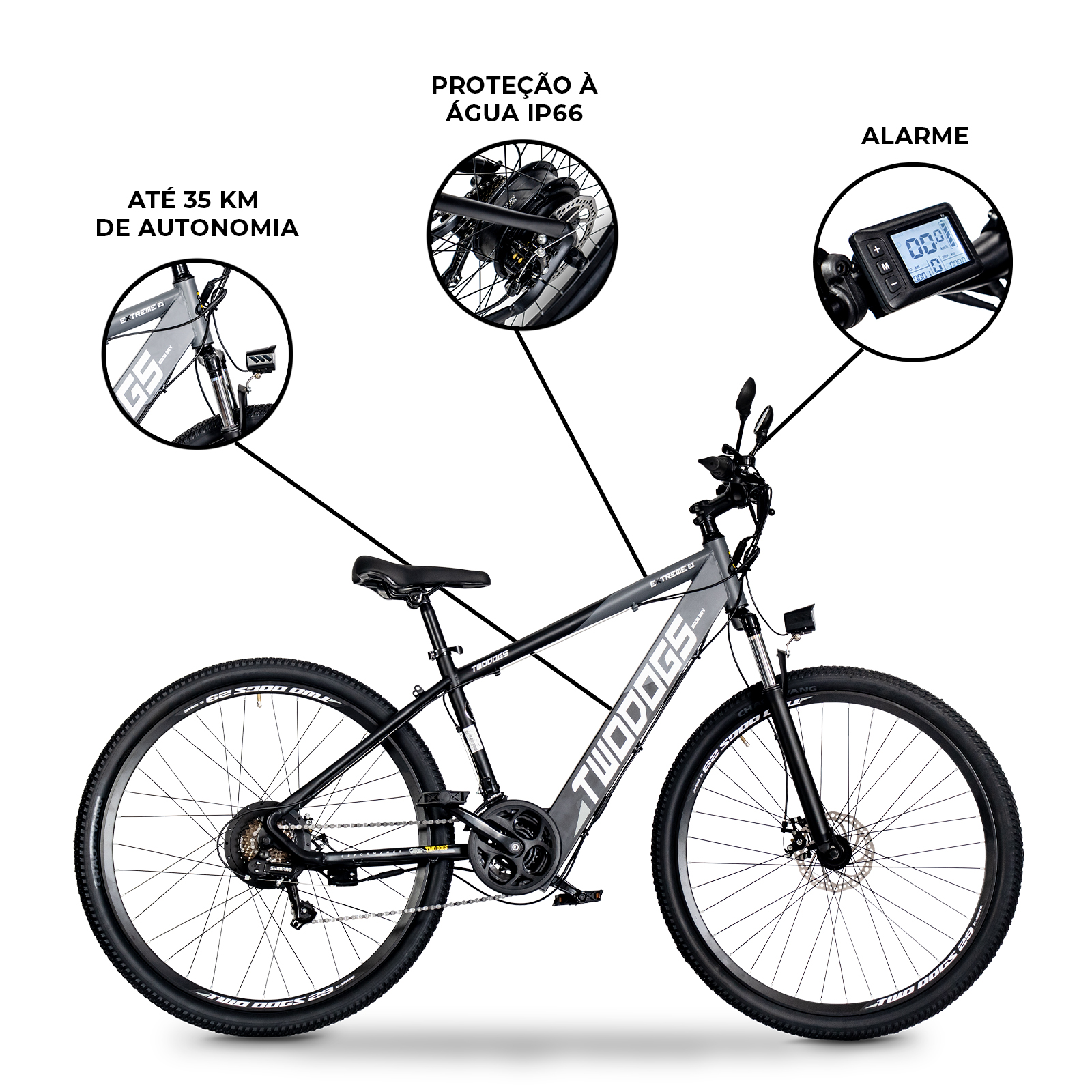 Bicicleta Elétrica MTB 29 Two Dogs Extreme E1 500w Lítio 36v c/ Alarme